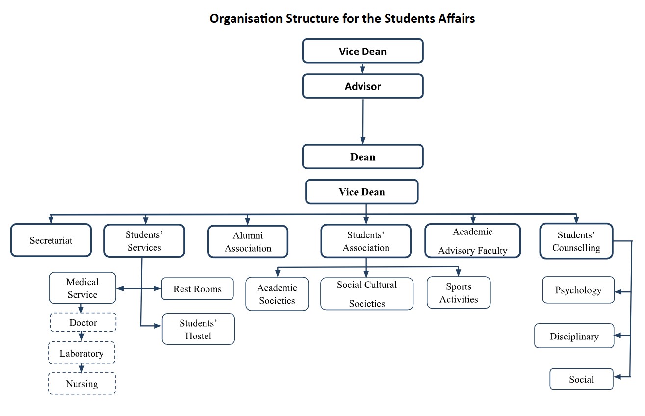 The students’ deanship is concerned with students’ services and counseling and to support of extracurricular activities.